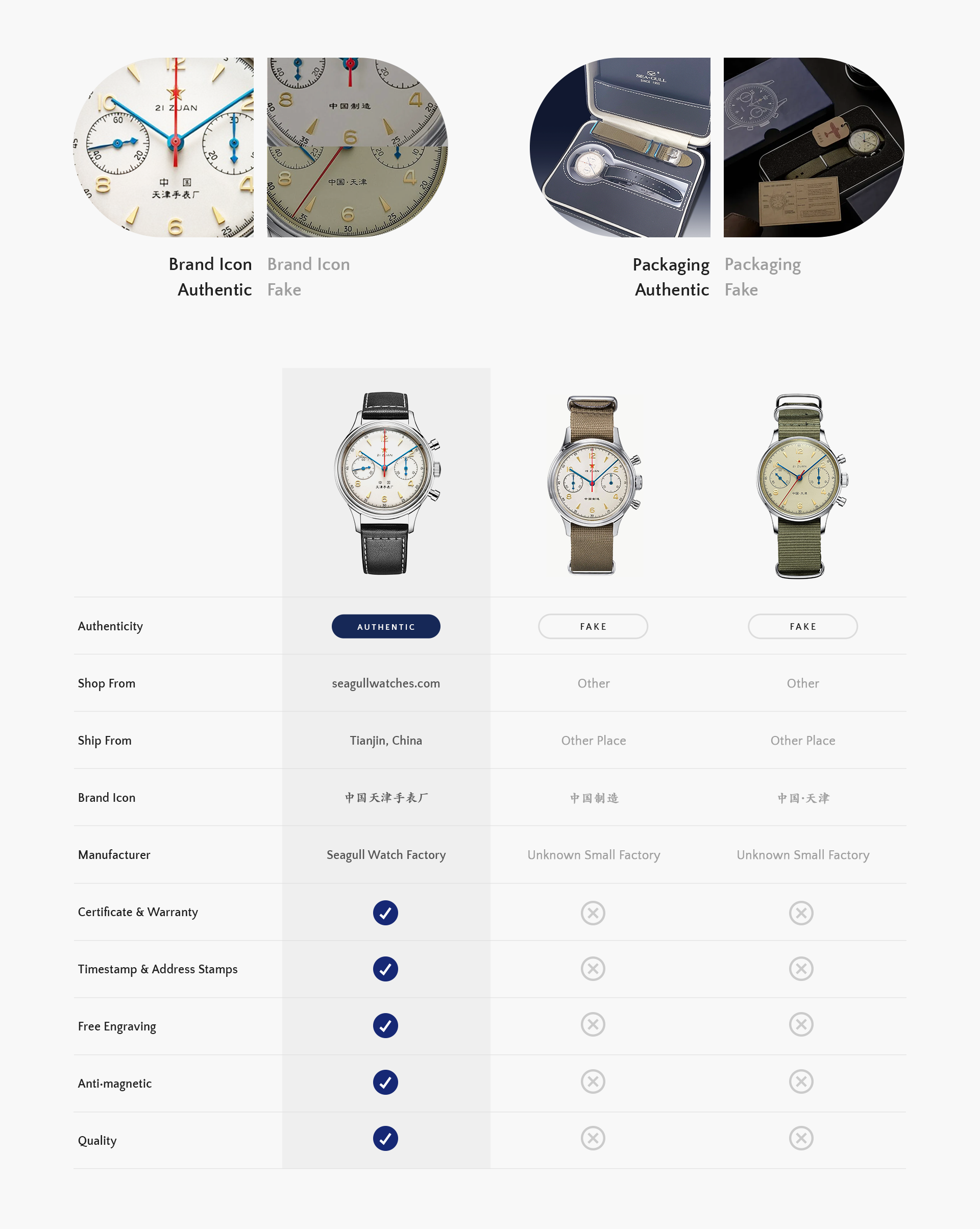 Fabrikadresse : Seagull Watches Industrial Park, No.199 Huanhe South Road, Tianjin Airport Economic Zone · 300308 · Tianjin · China (天津空港经济区环河南路199号海鸥表业集团)
