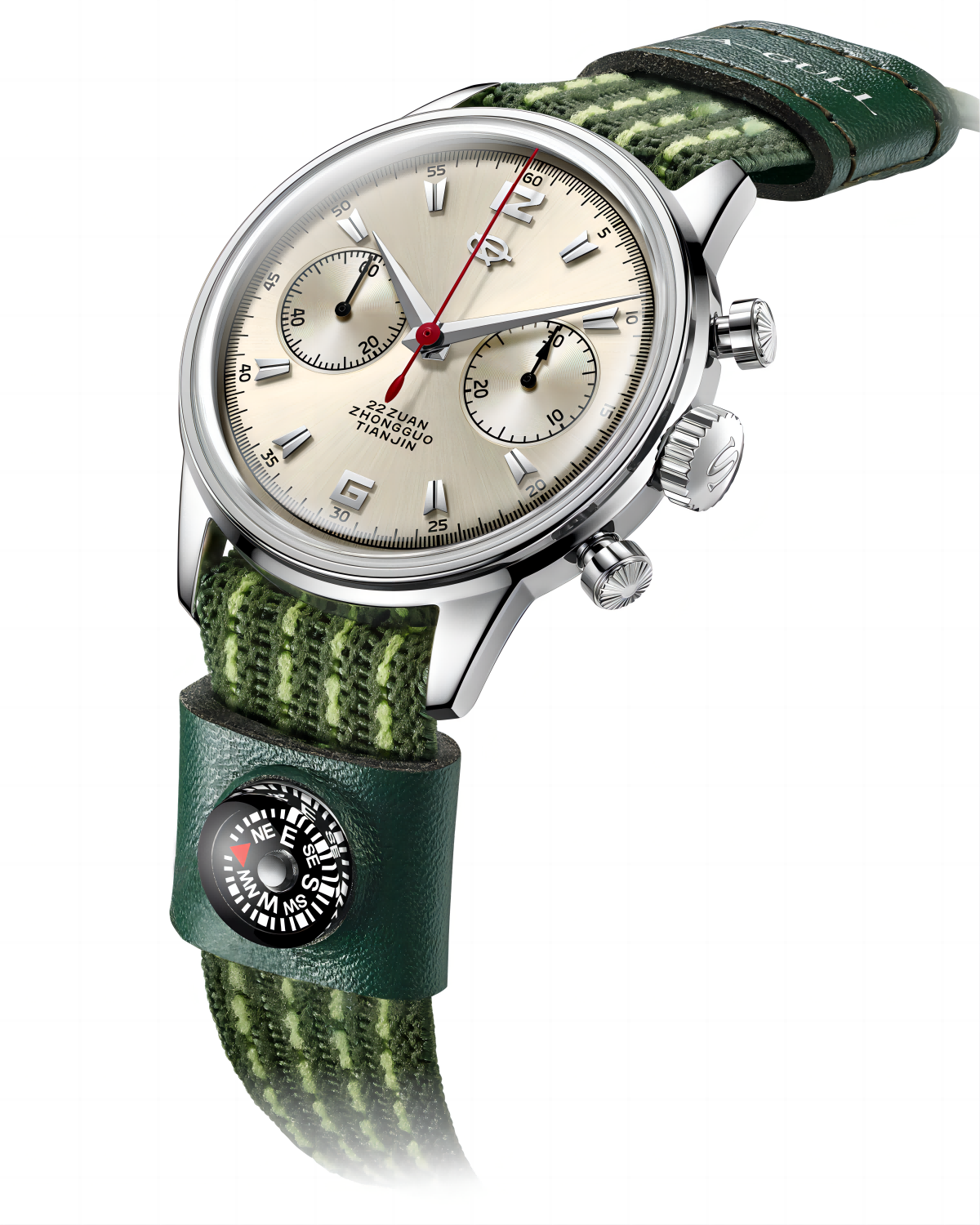Die 1963 Long Sky Edition mit ihrem klassischen 40-mm-Zifferblatt, das vom ursprünglichen 38-mm-Zifferblatt aufgewertet wurde, verfügt über ein Vintage-Blasen-Saphirglas für verbesserte Haltbarkeit. Die Rückkehr der „Flying Arrow“-Markierung und das einzigartige „Flying Sword Hand + Dual Time Numerals“-Design unterstreichen den kühnen, militärisch inspirierten Stil. Mit seinem gebürsteten Metallfinish und den ikonischen neun Sternen und dem Tianjin Watch Factory-Branding steht diese Uhr als Symbol zeitloser Exzellenz.