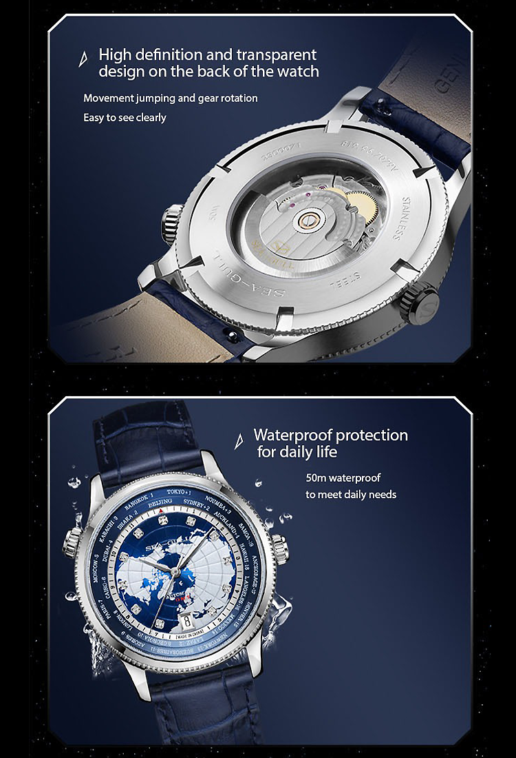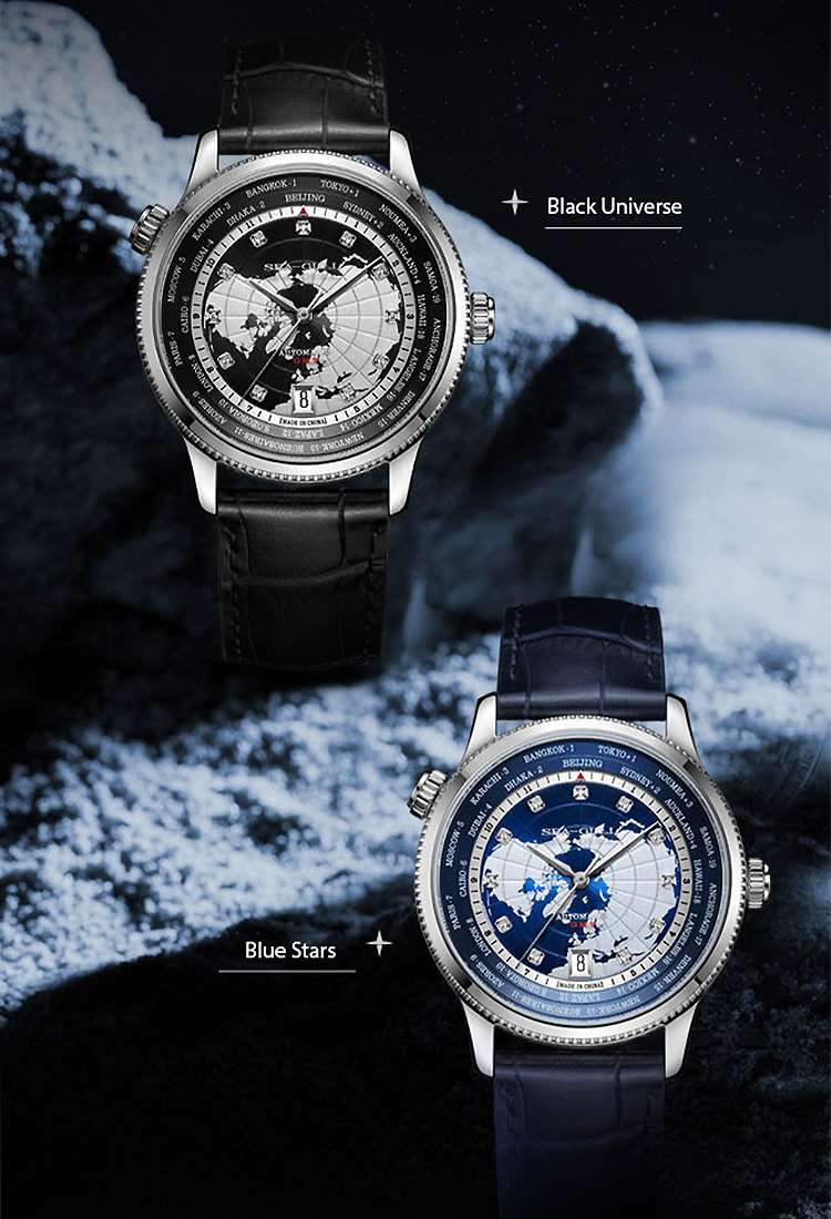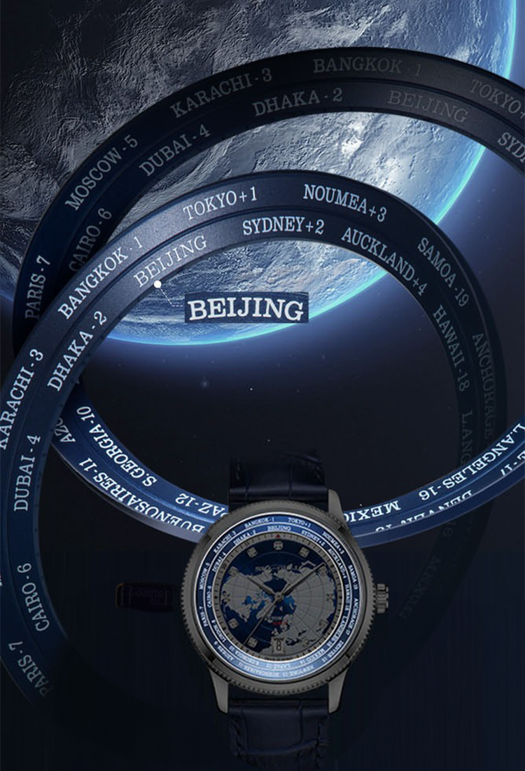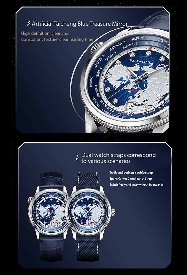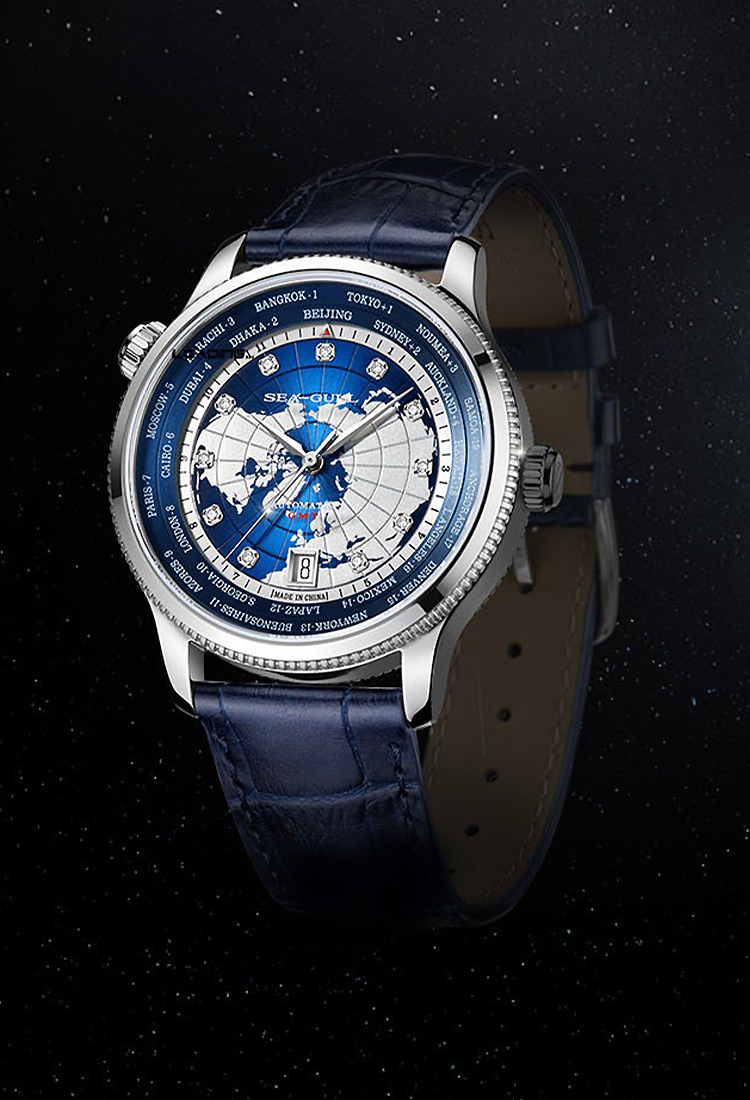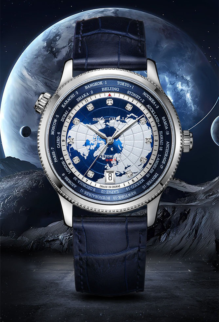 Montre Seagull à heure mondiale pour voyageur globe-trotter