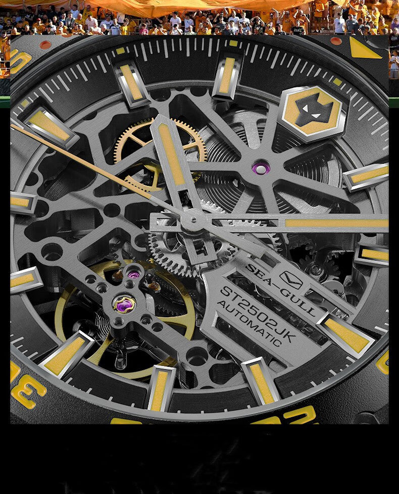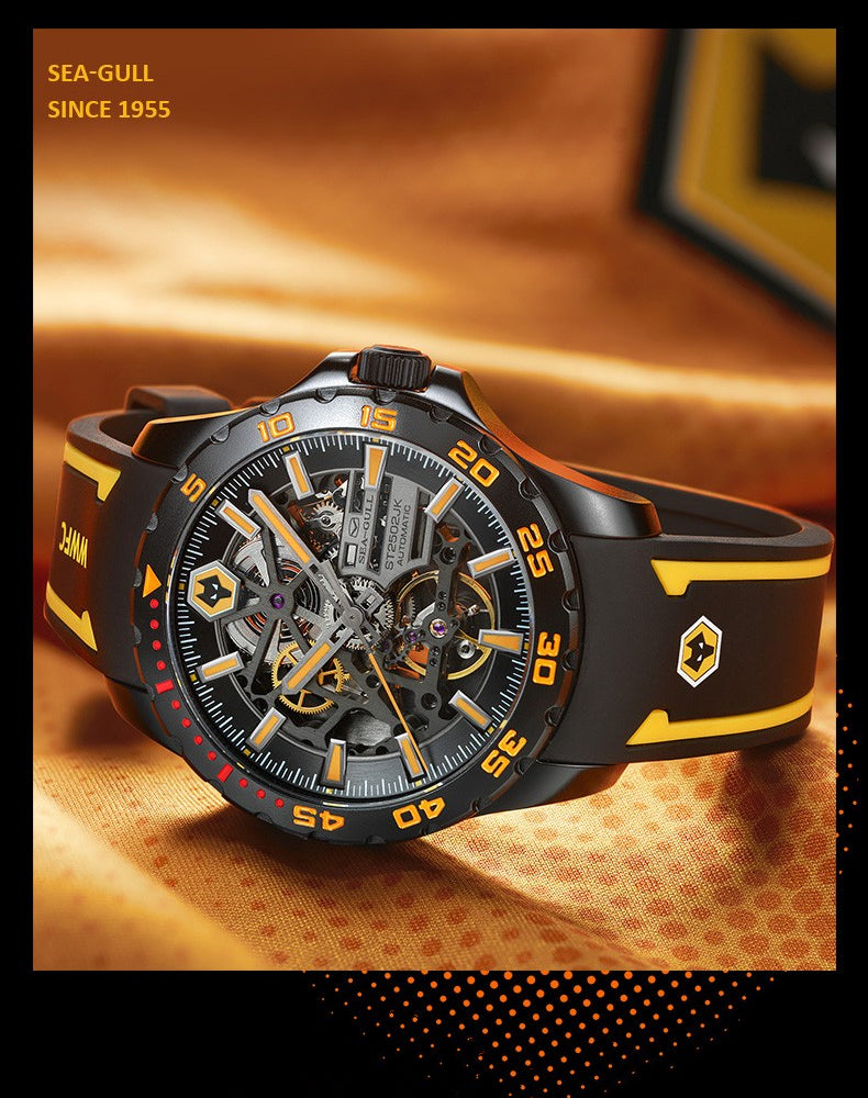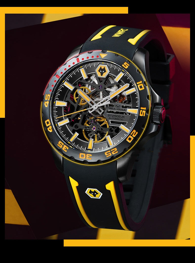 Montre mouette | Montre squelette des Wolves de la Premier League anglaise co-marquée par le football, 44 mm