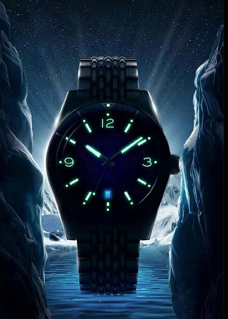 Le point sur l'aiguille des secondes symbolise l'exploration polaire, chaque rotation donnant l'impression d'être immergé dans la vaste étendue de l'Antarctique, explorant courageusement le monde inconnu.