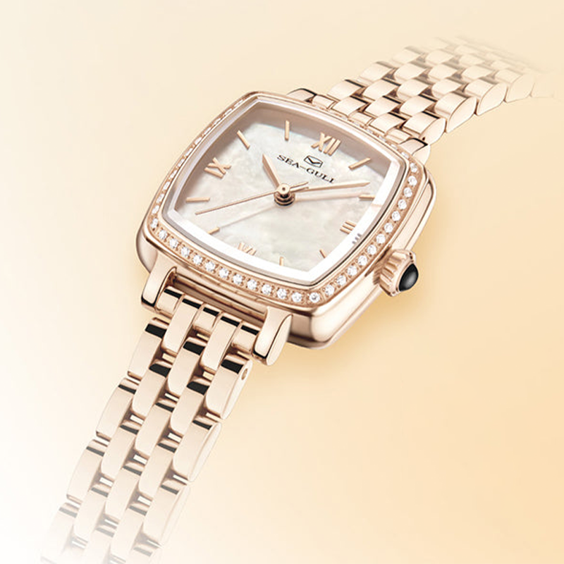 Inspired by the symbolism of prosperity and the quiet power within every woman, the Sea-Gull Fortune Gleam Mother-of-Pearl Automatic Watch captures the modern spirit of feminine brilliance. Its sculpted square silhouette and gilded contours echo the geometry of fortune, while mother-of-pearl, diamonds, and meticulous artisanship reveal a luminous elegance beneath the surface.