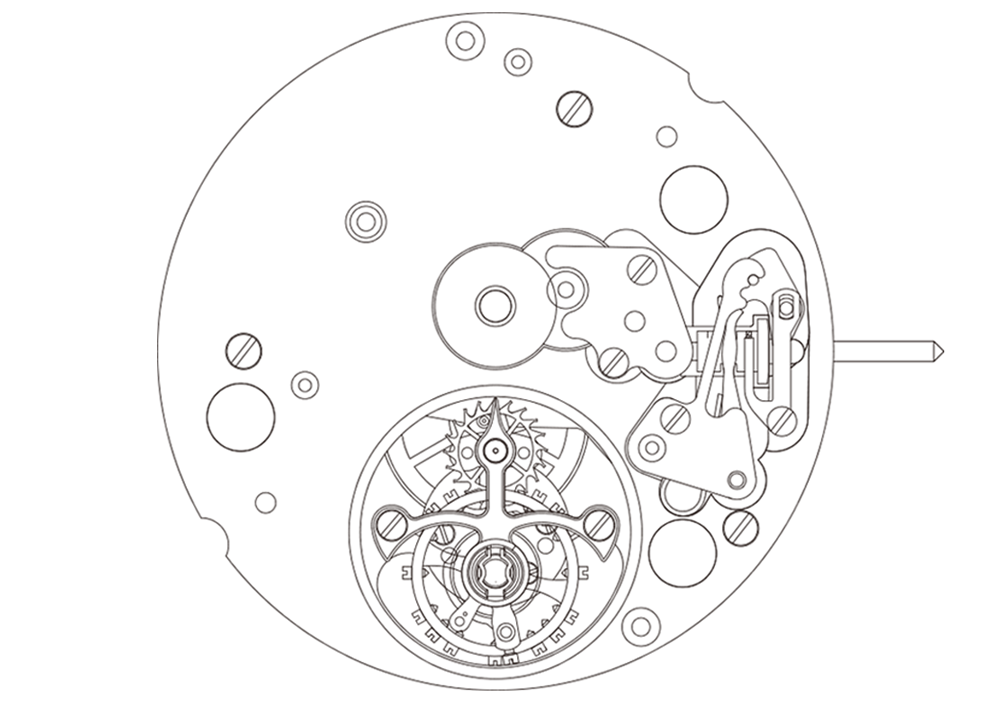 毎時 21,600 振動の手巻き機械式ムーブメント。パワーリザーブは最大 43 時間。