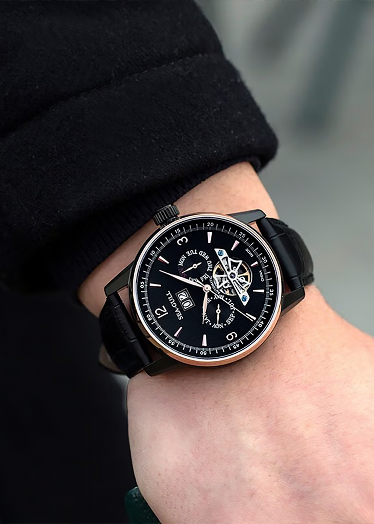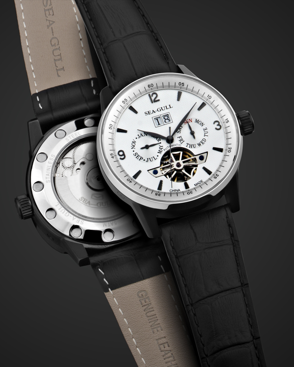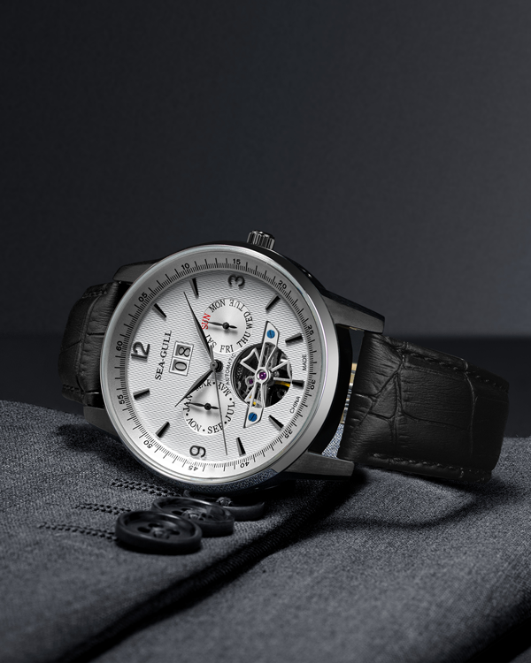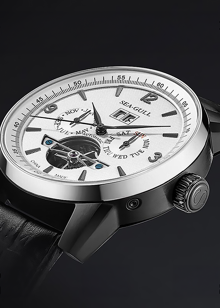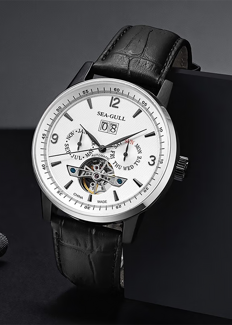 スタイルと実体に満ちた多面的な魅力。多機能ダイヤルは時間を効率的に管理し、その流れの魅力を堪能できます。フライホイール デバイスは機械的な中空の美しさを披露します。ST2625 ムーブメントを搭載し、正確な時間管理のための 21,600 vph の振動数と、十分な 45 時間のパワー リザーブを備えています。透明なケースバックを通して、機械式ムーブメントが遮られることなく見えます。絶妙なレザー ストラップは柔らかく、通気性があり、着け心地が快適です。