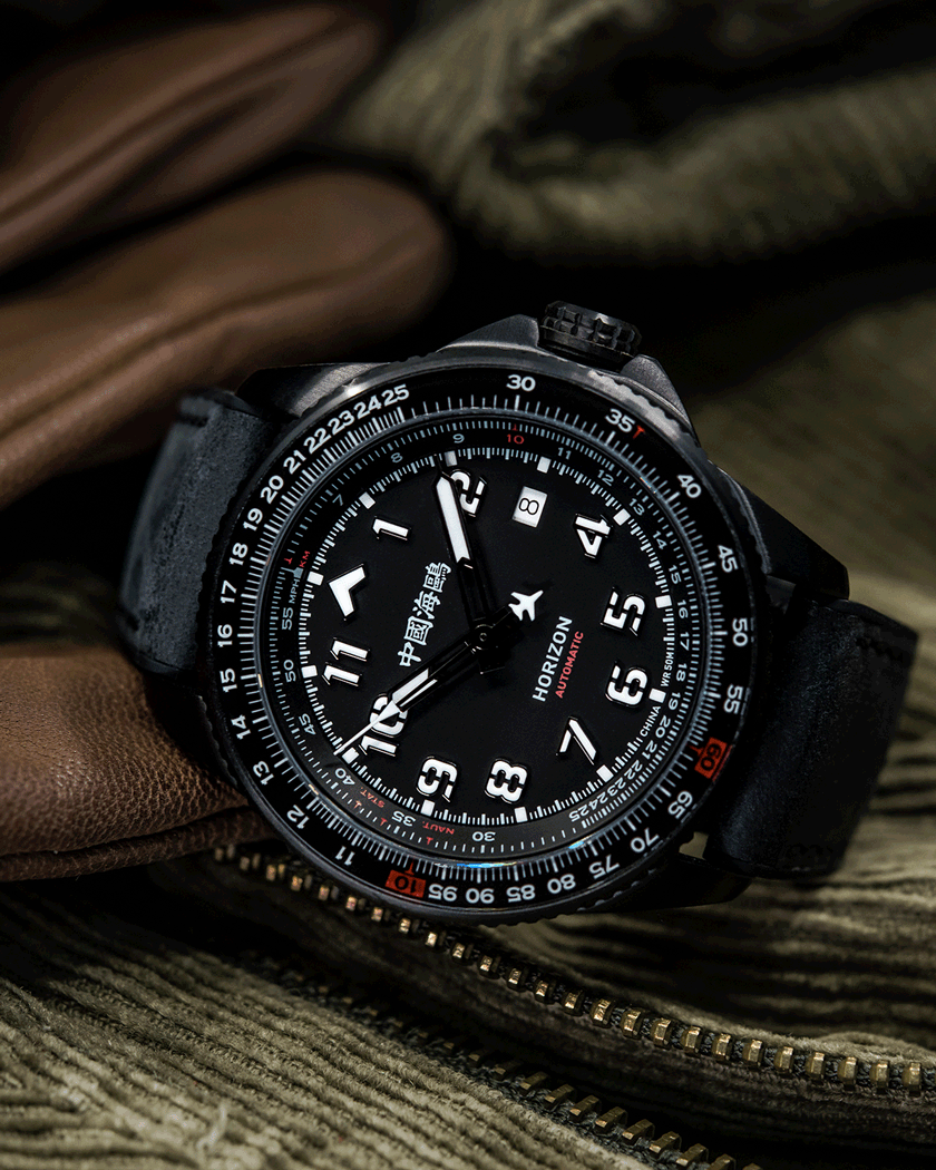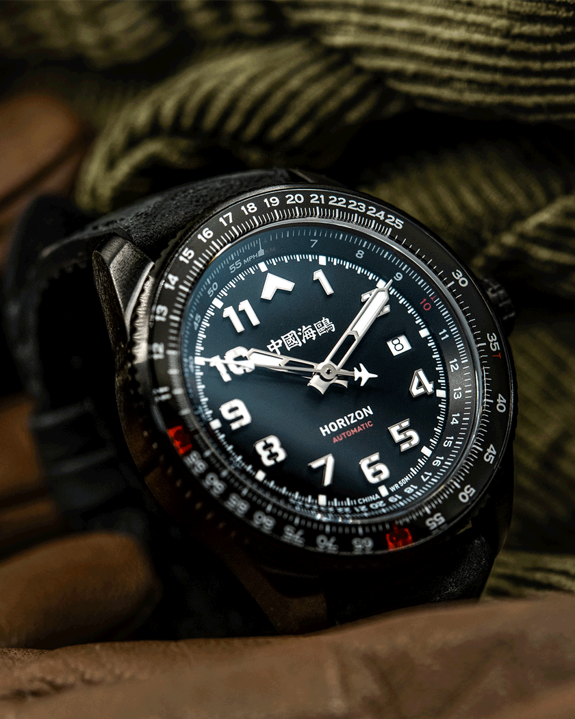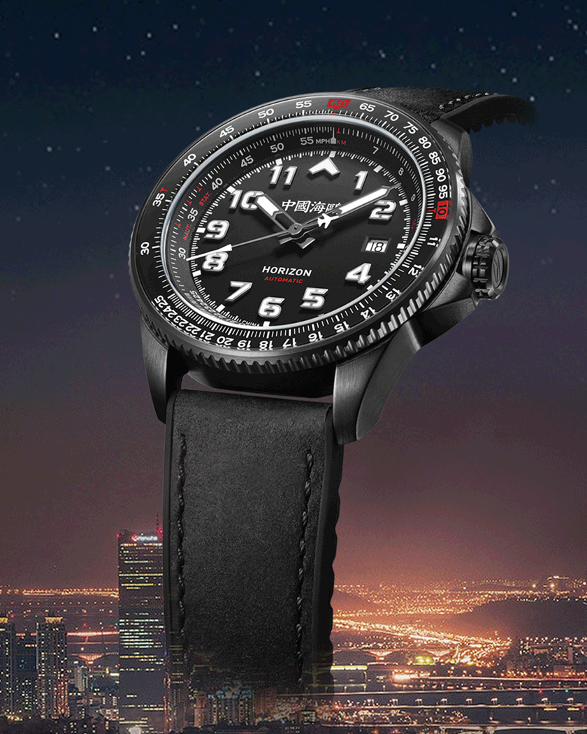 1963 年のクロノグラフにインスピレーションを得た Horizon シリーズは、次世代の冒険に活力を与えるパイオニア精神に敬意を表しています。Horizon スライド ルーラー モデルは、ナビゲーターのツールである航空情報からヒントを得ています。コックピットのダッシュボードを彷彿とさせるデザインは、航空のプロフェッショナリズムと自由な飛行のスリルを体現しています。自信に満ちた精度で、空を征服します。湾曲したサファイアをあしらった円形のスライド ルールは、3D 航空計器を思い起こさせ、時計に計算機能を備え、整然とした時間管理を実現します。特徴的な「カモメの翼」ラグは、空高く舞い上がる流線型の航空形状を思い起こさせます。ジェット機型の秒針は、中国初の自主開発戦闘機に敬意を表し、暗闇でも夜光塗料のシルエットが見える、次のミッションに備えています。Horizon のプロフェッショナルな飛行士の精神を信頼して、課題と新たな地平を切り開いてください。先見性のあるイノベーションで、冒険があなたを待っています。飛び立つ時が来ました。