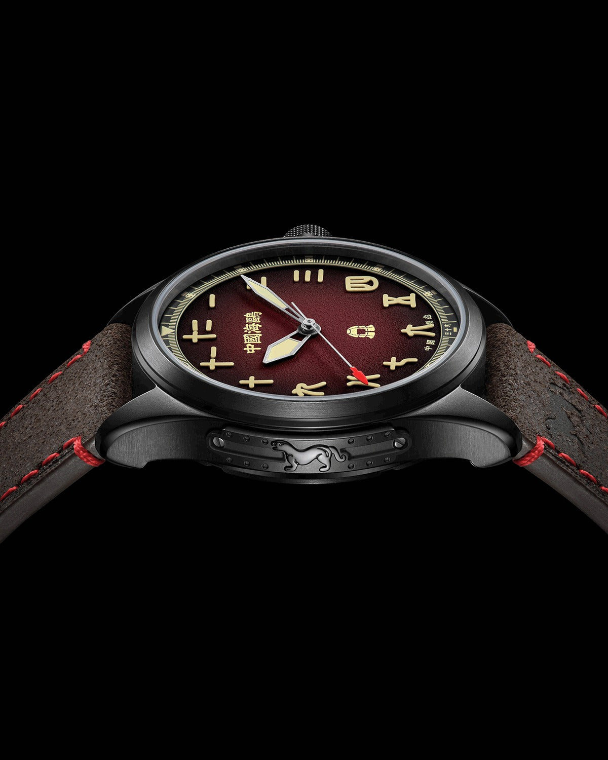 秦式虎割限定版腕時計は、古代中国の軍事文化の探求を余すところなく表現しています。デザインは秦王朝の虎割からインスピレーションを得ています。虎割は時計の側面に表示され、角弓の響きと壮大な戦闘歌が響き渡ります。6時の位置にある秦軍の鎧のヘルメットは、戦闘に身を包み、すべてを一掃する深紅の文字盤で目を引きます。クロスボウ型の秒針は、1秒ごとに鋭いエッジを露わにします。秦の印章の数字が時間を表示するために刻印されており、手首に祖先の伝説的な文明を披露します。