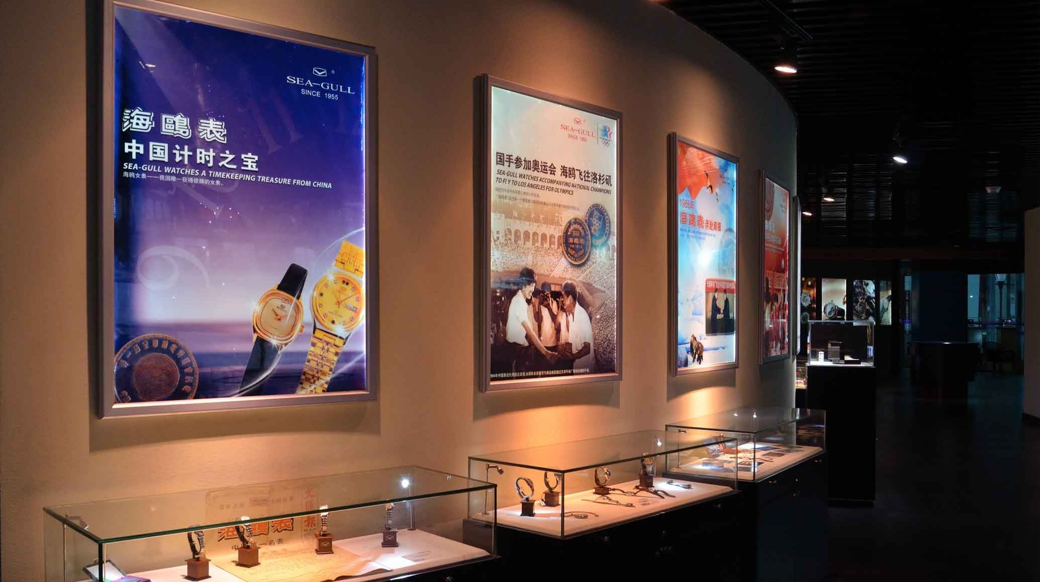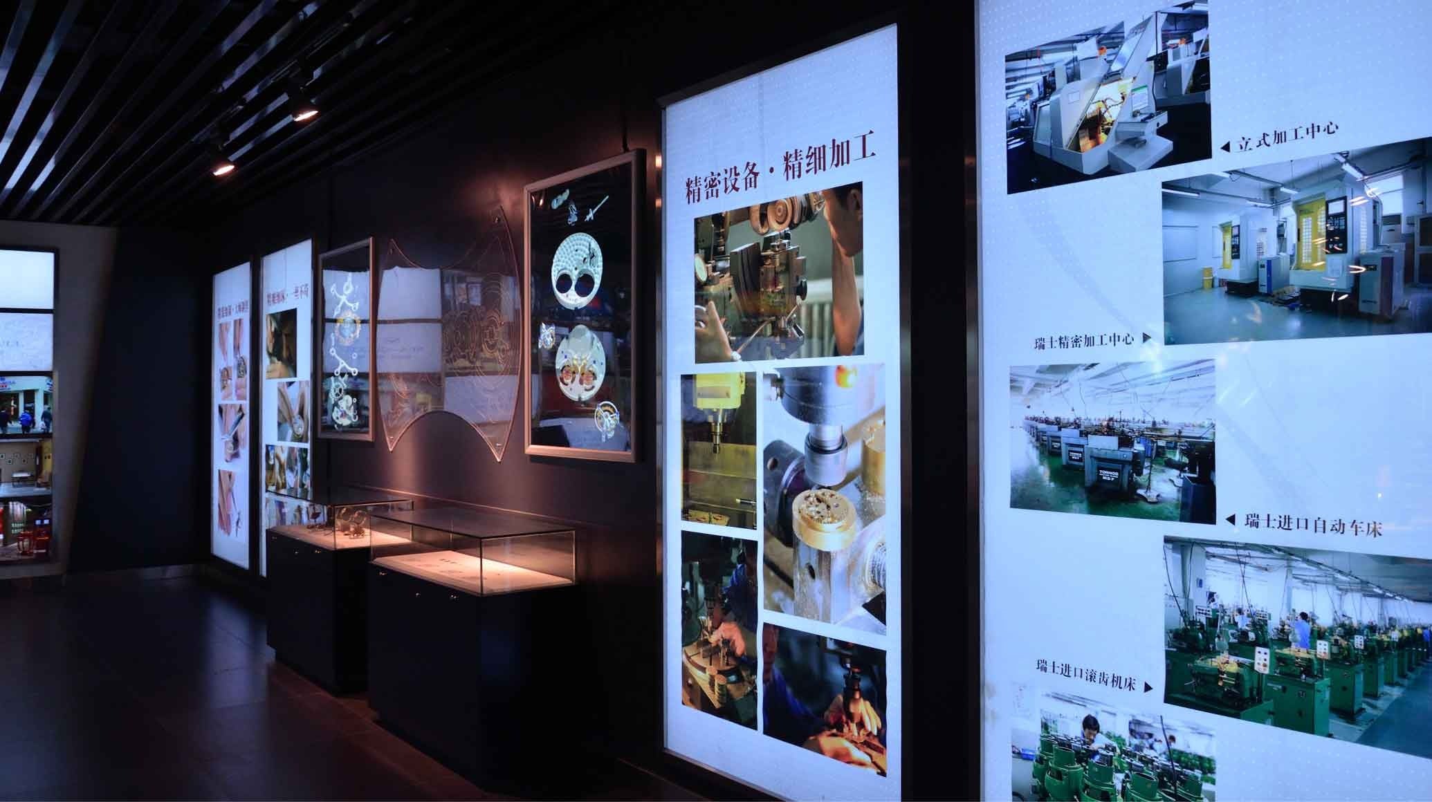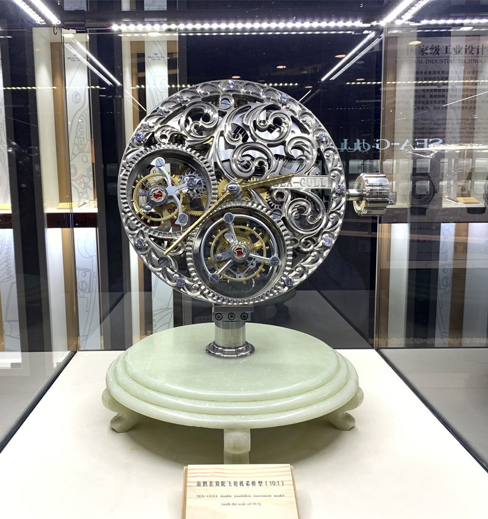 Seagull's subsidiary company Seagull Intelligent Technology produces precision machined military-grade products, electronic products, medical devices, and outdoor landscape clocks. The display cabinets exhibit most of the components for watches.