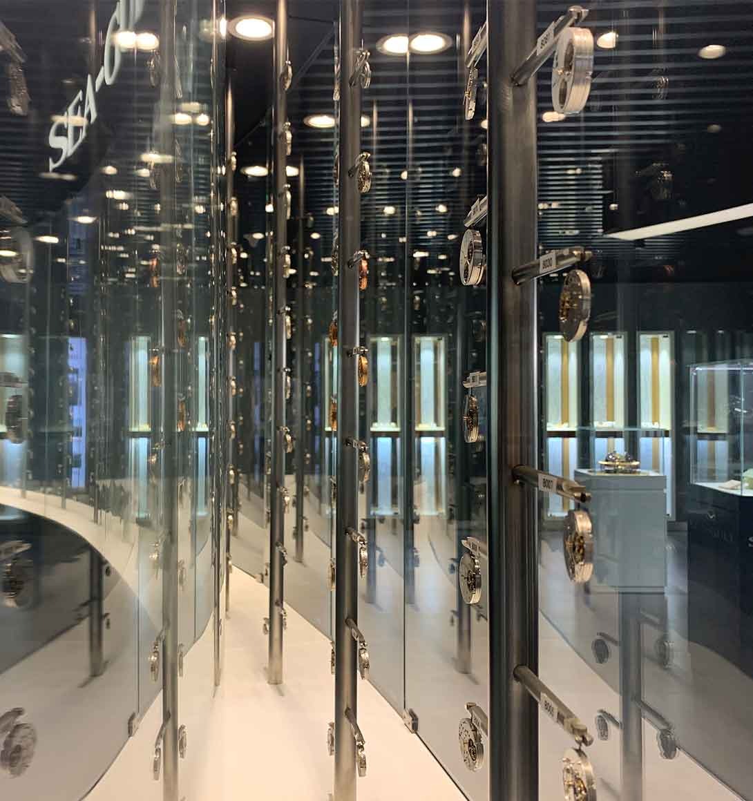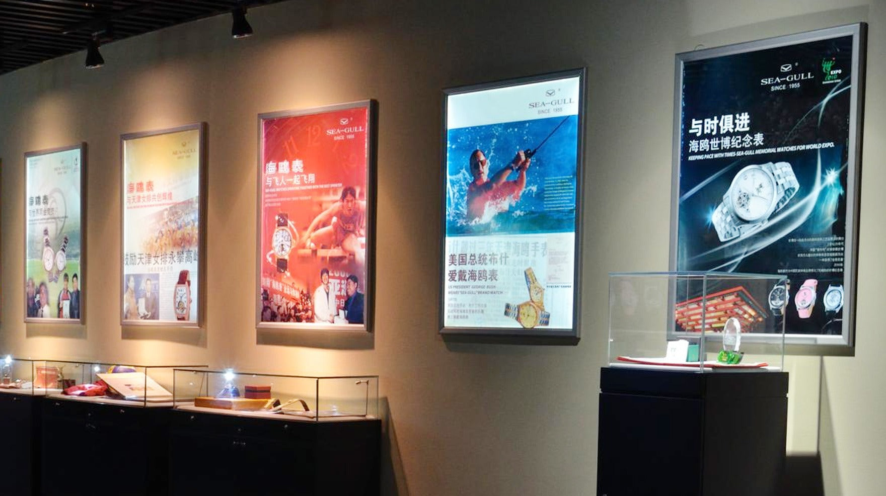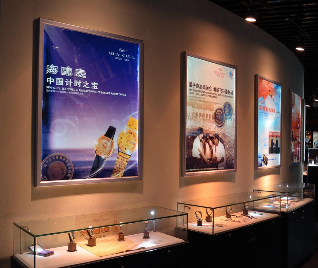 Seagull's subsidiary company Seagull Intelligent Technology produces precision machined military-grade products, electronic products, medical devices, and outdoor landscape clocks. The display cabinets exhibit most of the components for watches.