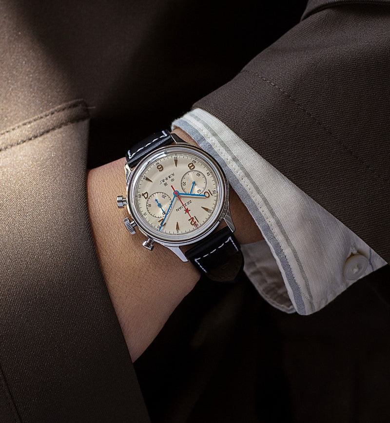 In 2023, the legendary 1963 celebrates its 60th anniversary. Seagull pays tribute with this modern reissue, fusing contemporary watchmaking with aviation pioneering spirit. For every bold pioneer, it kicks off a new era and journey. The dial and caseback design draw directly from 1963 original sketches, restoring its chronograph layout. The dial steps up from 38mm to 40mm for contemporary appeal, while the vintage domed crystal is hard sapphire for durability. An inner anti-magnetic cover protects precision timing. The crisp white dial with red and blue hands encapsulates a defining moment in time. Details like the "22 zuan" and "Tianjin" inscriptions evoke rich heritage. And the singular red star encapsulates 1963's unique Chinese flair, a soaring ambition made iconic on the wrist. With visionary spirit, the future takes flight again.