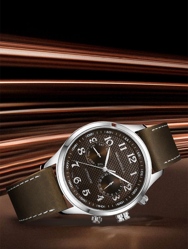 Movement: Self-winding mechanical movement beating at 21600 vibrations per hour, with a power reserve up to 42 hours