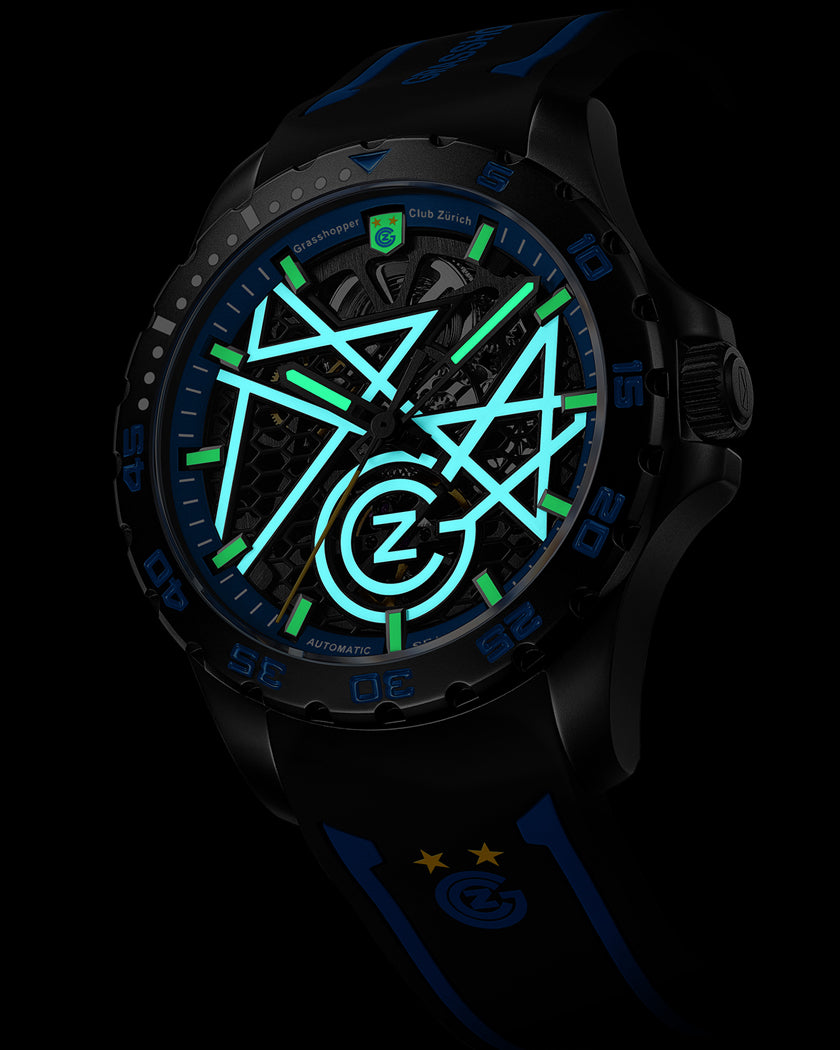 In 2022, Seagull partners with the century-old Swiss football powerhouse Grasshopper Club Zürich for a commemorative fan watch. Equipped with Seagull's self-developed ST25 movement, the dial and caseback boast wide openwork to showcase mechanical artistry. The rotating 45-minute bezel times critical moments - customized for the beautiful game. Continuing the Grasshoppers' iconic badge, a constellation of stars shines in open lacquer while the emblem is set at 12 o'clock to mark victorious occasions.Below, a net motif honors the sport's origins and competitive spirit. And luminous accents energize nighttime wear with trendsetting flair. With bold design from a pioneering Chinese watchmaker, celebrate your team pride in excellent company. Wherever you go, this unique timepiece connects you to rich history and new horizons ahead.