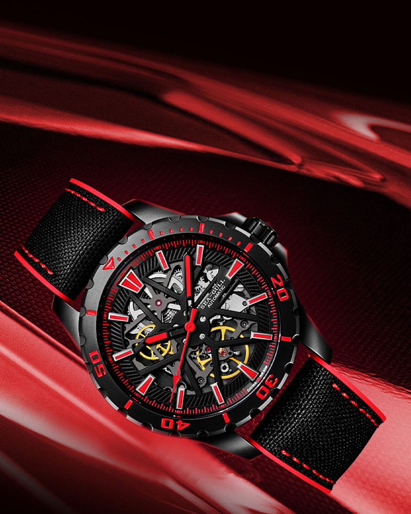 This vibrant timepiece combines an athletic 44mm stainless steel case with an elaborate exposed movement. Skeletonized for an unimpeded view of the inner workings, it is an avant-garde blend of advanced engineering and artistry. The luminous displays ensure optimal visibility for active pursuits, while the quick-set date keeps pace with an on-the-go lifestyle. With 40 hours of power reserve from the self-winding in-house calibre, it is a dynamic mechanical watch ready for adventure.