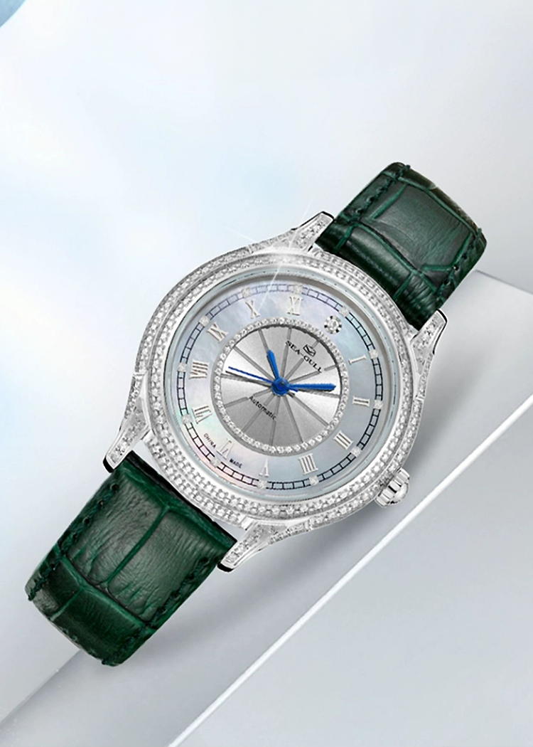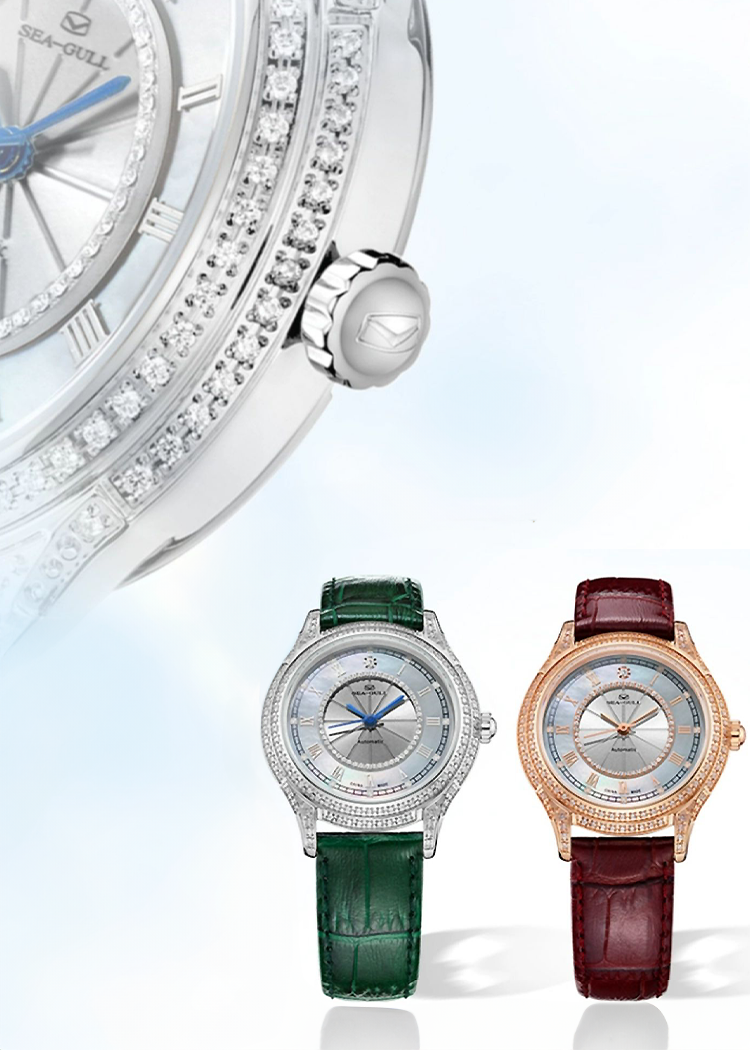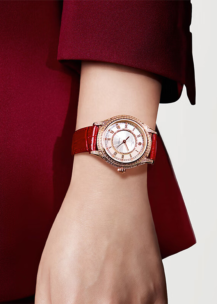 這款時計以都市職業女性為靈感,將精緻設計與大膽裝飾融為一體,向獨立自信的現代女性致敬。每一枚珍珠母貝錶盤都閃爍著微妙的珍珠光彩,經受住了時間的考驗,展現出強大的抗氧化能力,永遠散發著光彩。