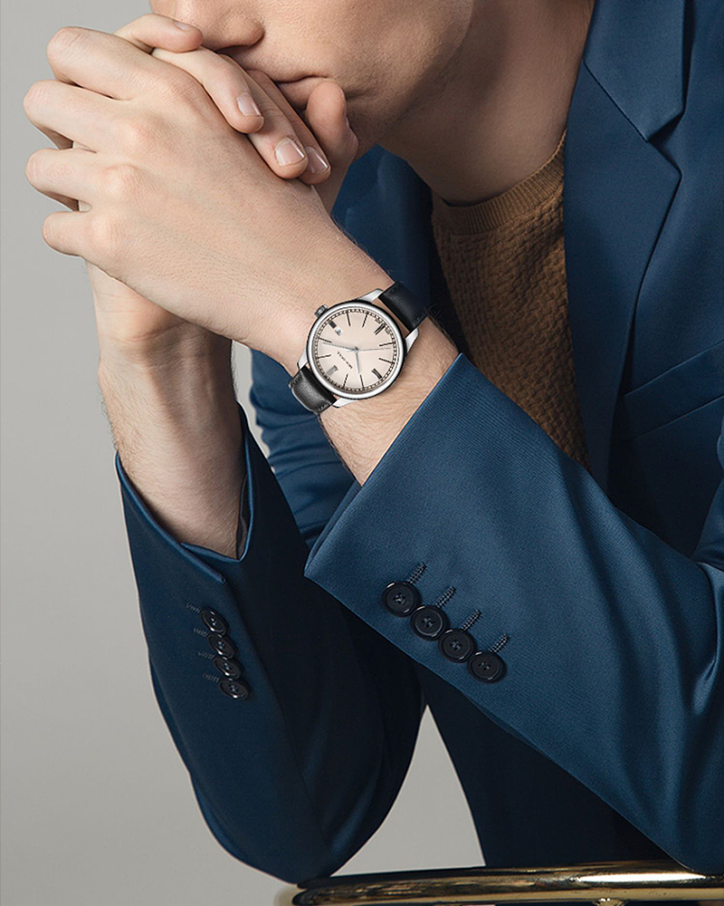 古典主義的特殊標誌之一,它保留了四向字形,採用修長的手法結合現代條紋手法,展現優雅氣質。大三針和3點鐘位置的基本日曆設定拋開表面上的一切複雜,專注聆聽來自核心的聲音。表背追溯中國工匠之心。每個部件都經過精心打磨,玩起來會有一種尊重的感覺。