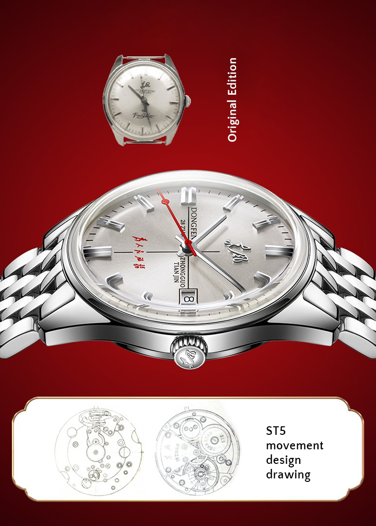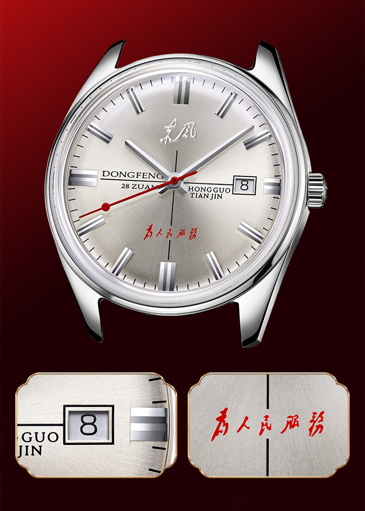 1966年中國第一隻自主設計製造的手錶-東風錶的復刻版。 「為人民服務」限量版向經典原著致敬,同時繼承其傳統和對公共服務的承諾。
